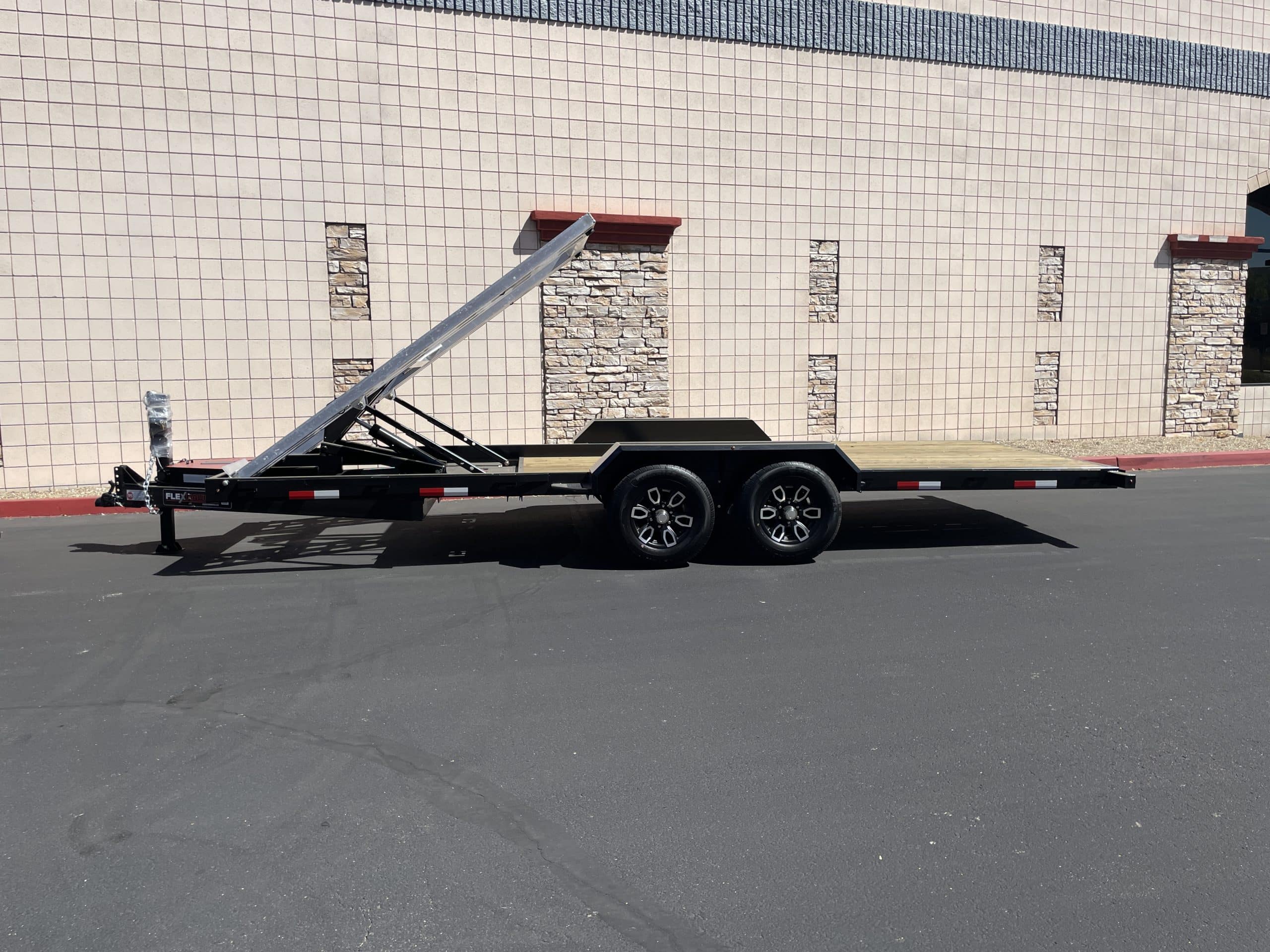 The FLEX HAULER is an American-made, commercial-grade SxS trailer with a powered 25,000-lb hydraulic scissor-lift deck, built for fast, effortless loading.
